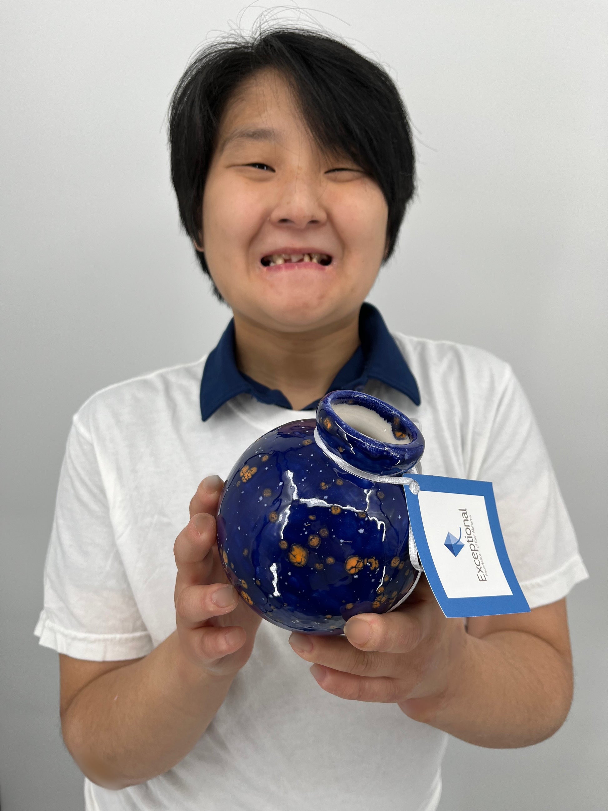 Round Ball Vase in Orange & Blue
